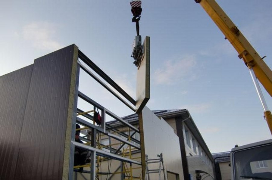 Швидкість монтажу сендвіч панелей значно вище, ніж будівництво з використанням традиційних матеріалів. Бригада всього з трьох чоловік та лише одна одиниця техніки здатні за один день змонтувати 200 і більш кв. м. поверхні.