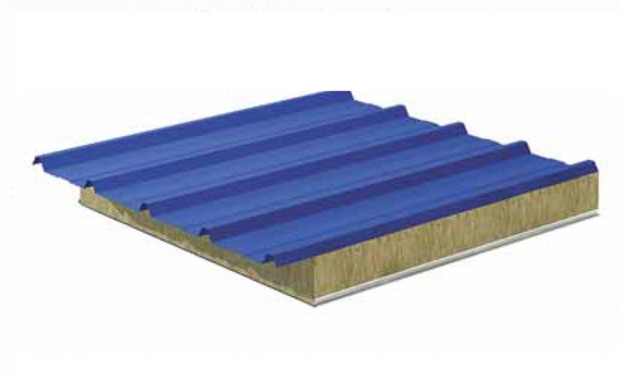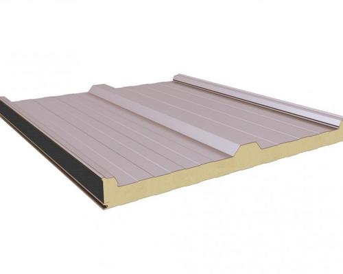 До покрівельних плит пред'являються більш жорсткі вимоги, ніж до стінових. При виготовленні покрівельних сендвіч-панелей збільшується товщина металу. Мінімально вона складає 65 мм, максимально - 250 мм. Однак навіть при найбільших товщинах, загальна вага квадратного метра плити не перевищує 20 кг. Це набагато менше, ніж традиційні матеріали, наприклад, м2 черепиці. Завдяки цьому монтаж сендвіч-панелей не вимагає важкої підйомної техніки. Будівництво навіть великих промислових об'єктів виконується швидше, ніж будівництво методом цегляної кладки та навіть при використанні панельної технології. Готова покрівля не вимагає масштабних оздоблювальних робіт, металеві плити на стадії виробництва покриваються антикорозійними засобами та фарбуються обраним замовником кольором по каталогу кольорів RAL.